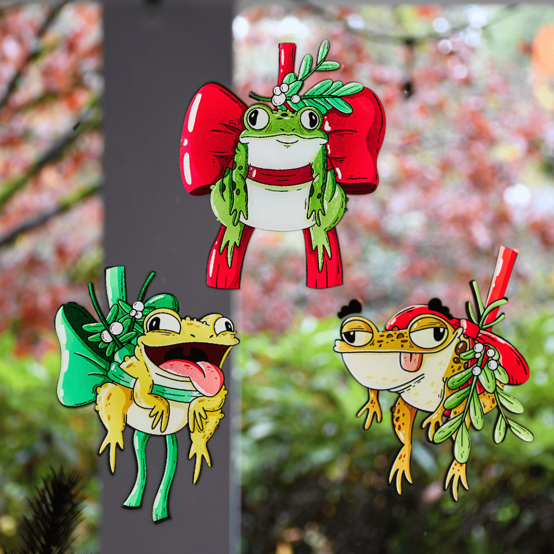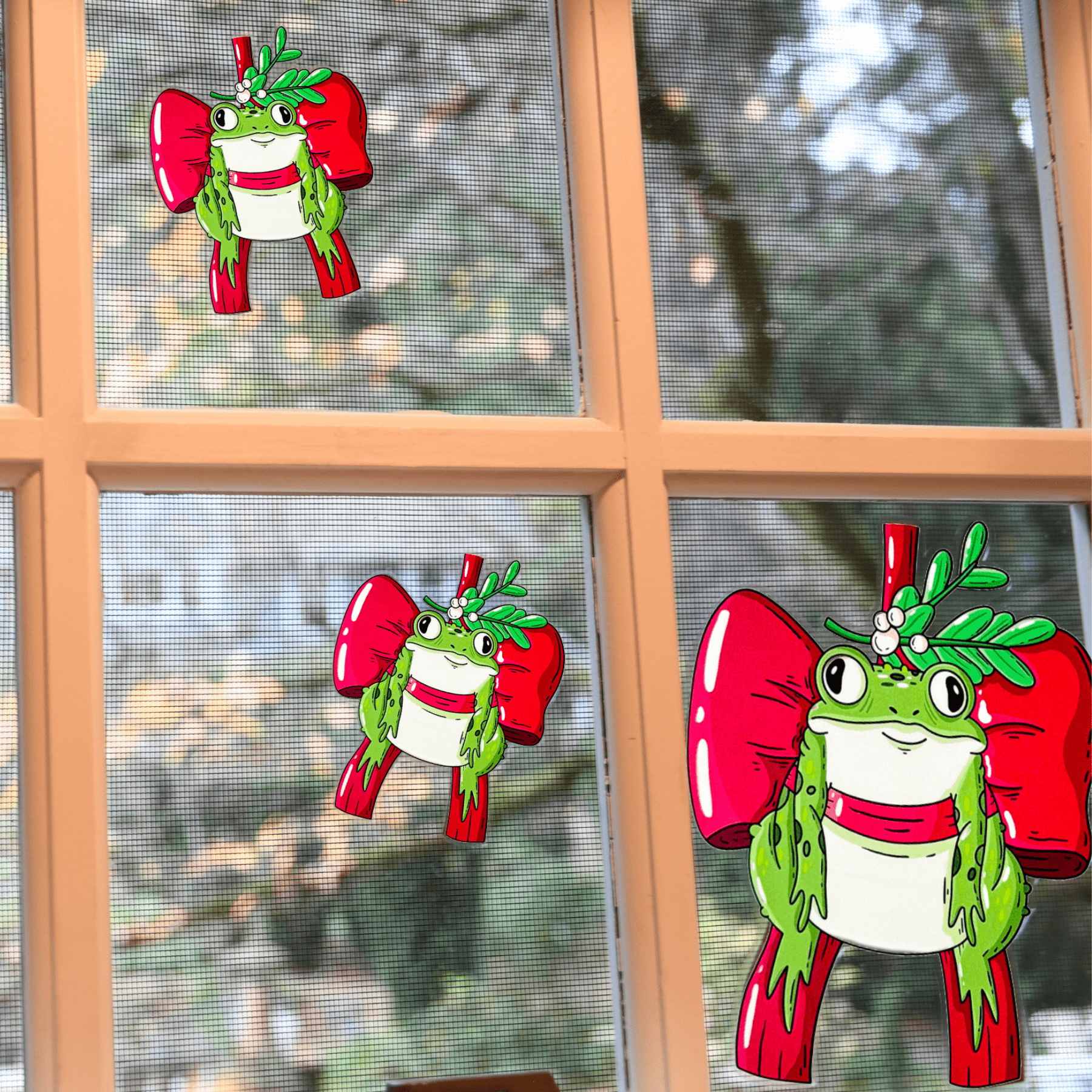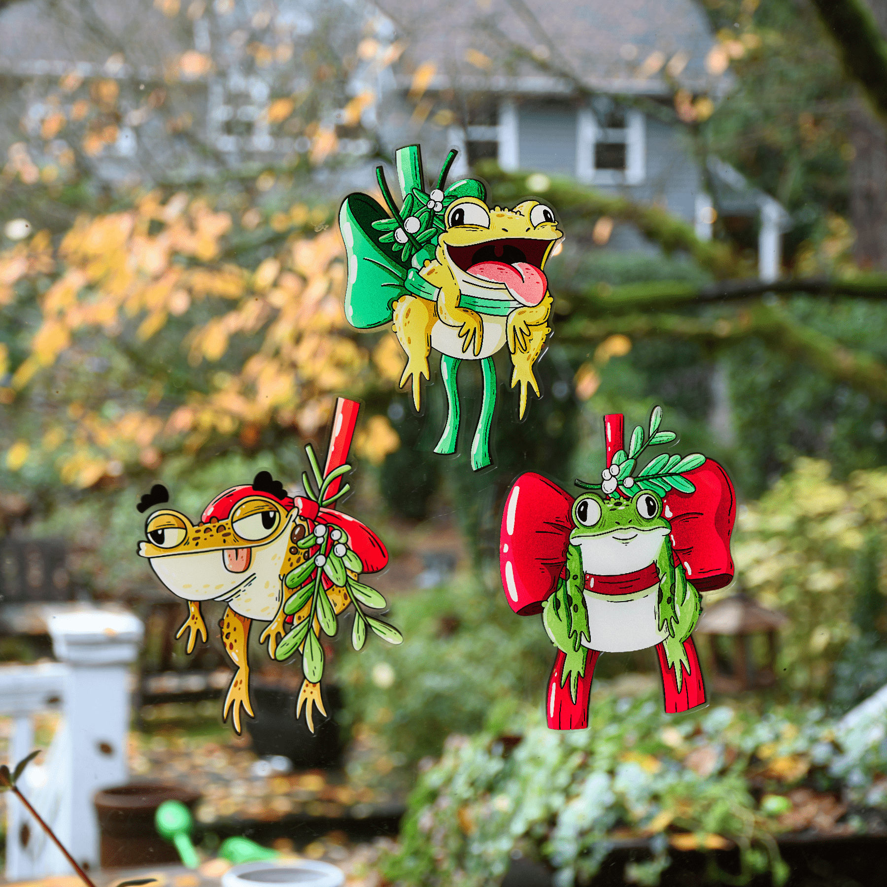 I fell in love with the Mistle-toads immediately. So I purchased the clings to share with a friend. Often with clings you have to decide if you get the good side or the people outside the glass. With these everyone gets the best view. 💕
