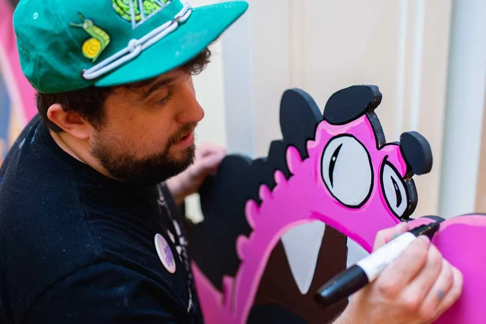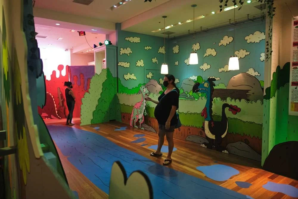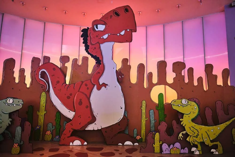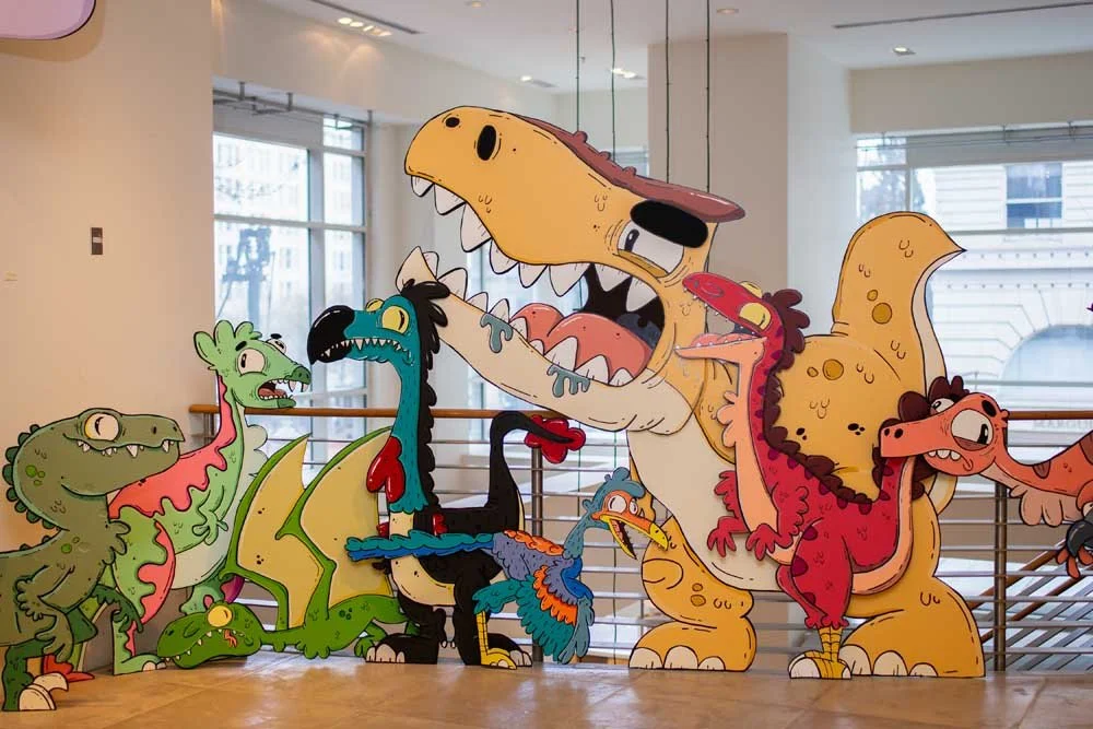 A pop-up museum like no other! Dinolandia brought 20,000 square feet of prehistoric play to downtown Portland. Visitors wandered through fossil labs, dino dance parties, and interactive exhibits, all crafted in Mike’s signature cartoon style.